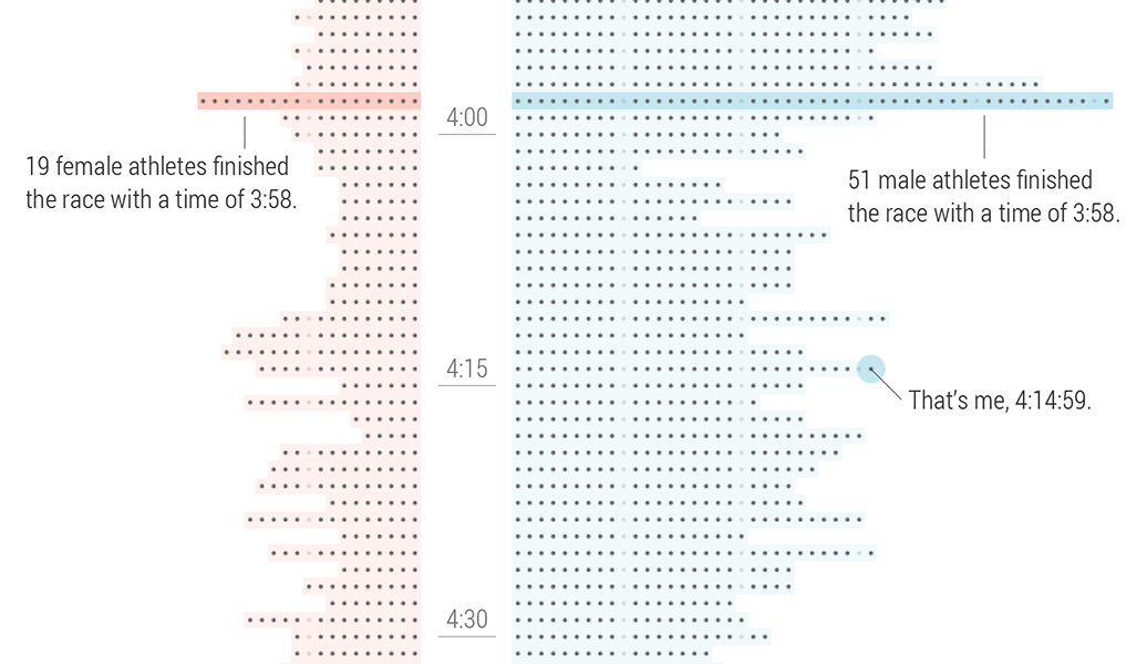 Similar to our visualisation of the Sydney Morning Herald Half Marathon, I undertook on-field observations in the form of running the marathon myself. Look out for the