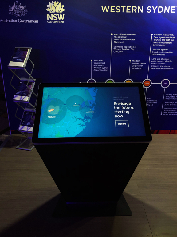 We created interactive touchscreen for the Department of Premier & Cabinet to showcase new infrastructure, businesses, jobs and educational opportunities in the Western Sydney Airport area.
