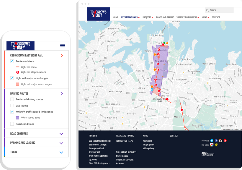 Transport for NSW had to inform the general public about the upcoming major changes to Sydney’s transport system, and needed interactive maps to show people exactly what was happening where.