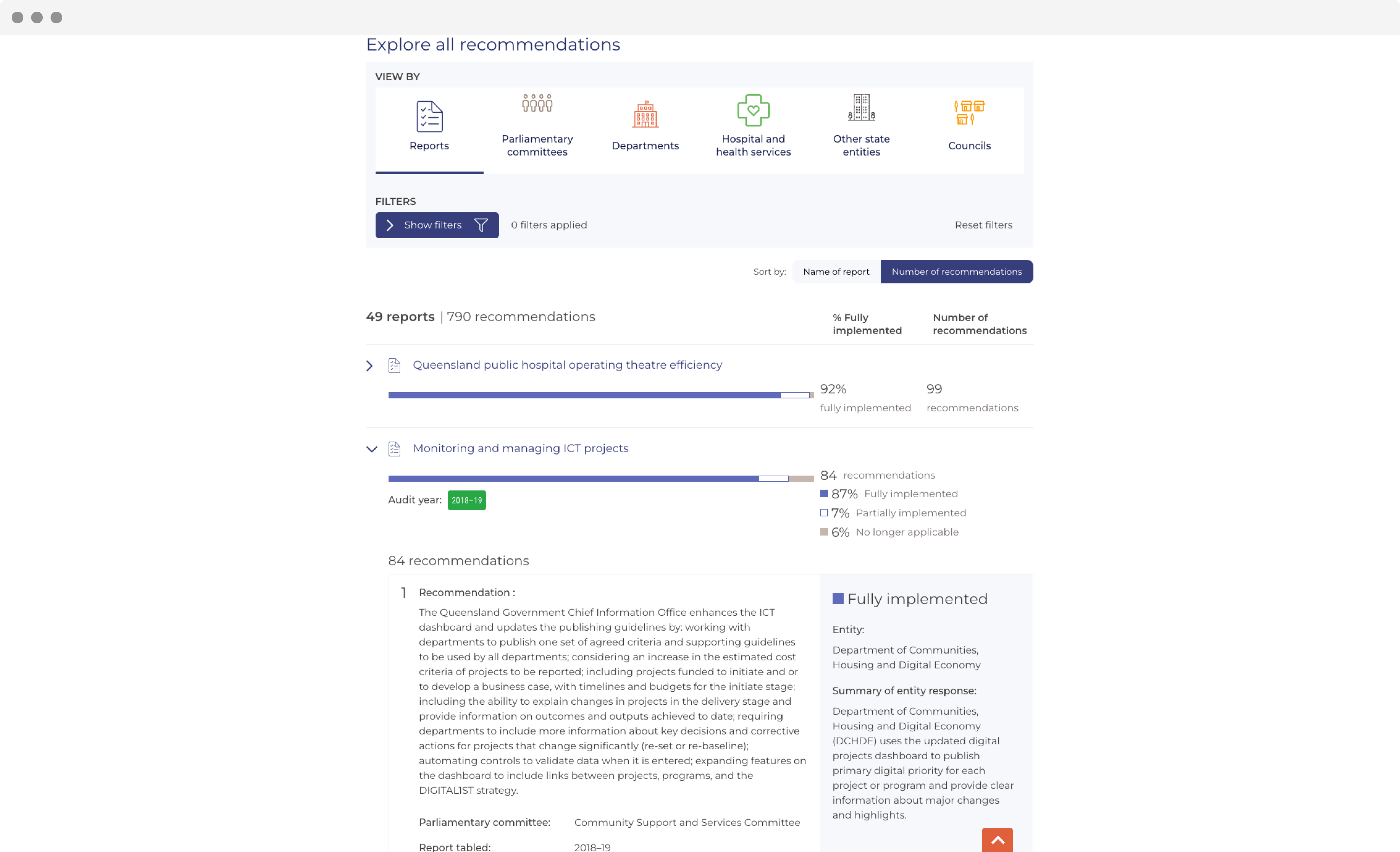 Over three years, our team achieved remarkable milestones by delivering over 10 visually consistent and technically robust dashboards. The Queensland Audit Office (QAO) embraced the new process, implementing a total of 22 updates, effectively supporting their reports to parliament. To maintain consistency and ease of maintenance, we developed a standardized data methodology and design approach for the dashboards. We actively increased the data visualisation capability of the QAO team, empowering them to create impactful visualisations independently. As a result, the implementation of our dashboards led to heightened engagement with reports to parliament, capturing the attention of decision-makers and stakeholders with clear and concise communication of complex information.