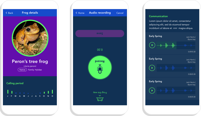 Small Multiples was commissioned by The Australian Museum in the initial phase of the FrogID project as the digital product design agency. We carried out user research and testing as well as developing the visual identity and the UI design for the app developers.