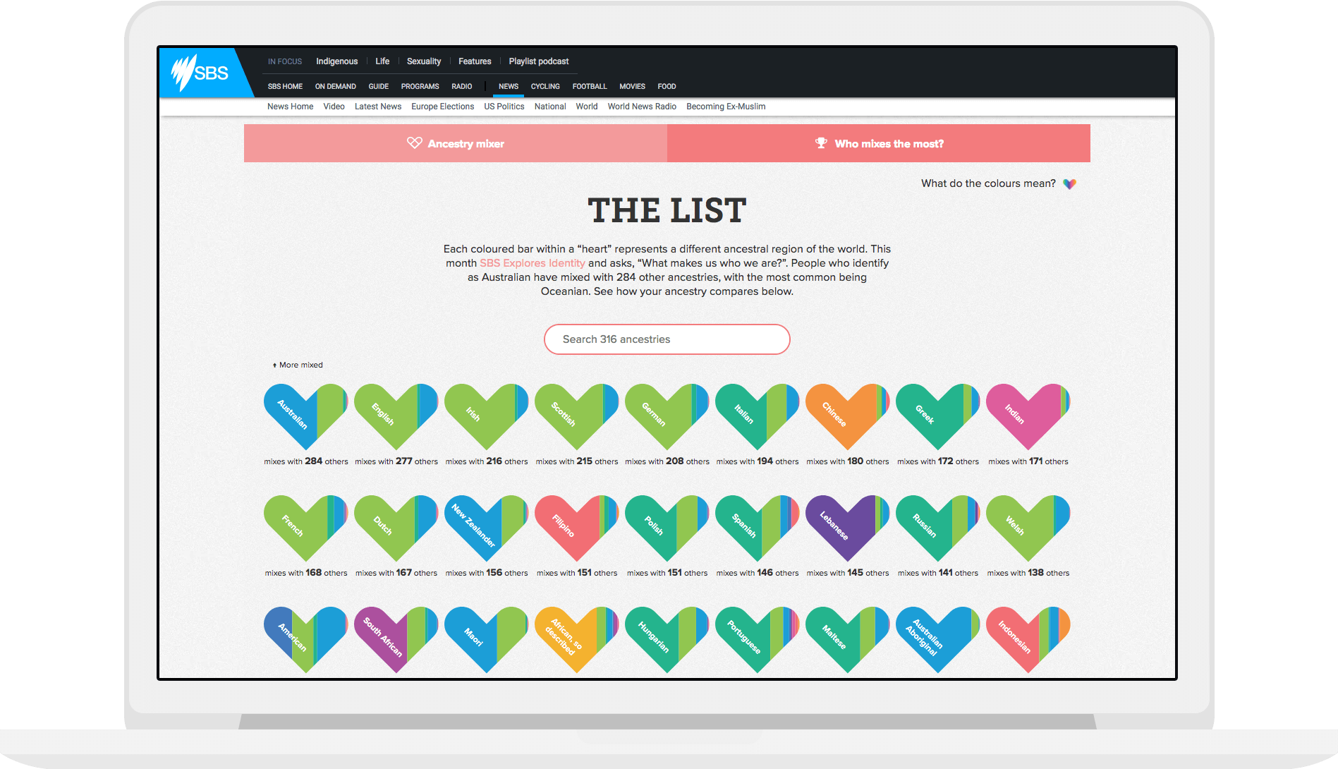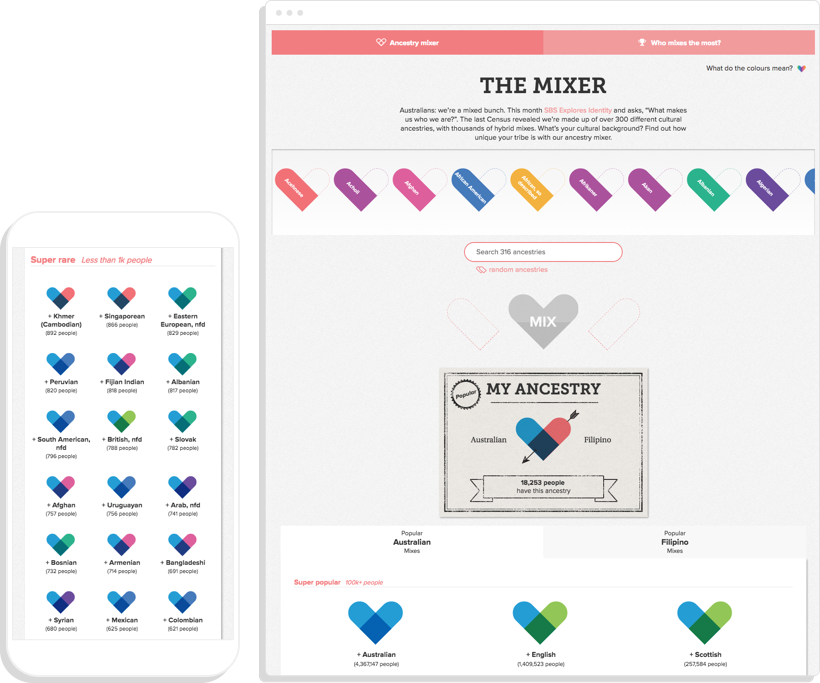 People can calculate how popular a particular mix of ancestries is and explore to find out what the most interesting mix is in Australia.